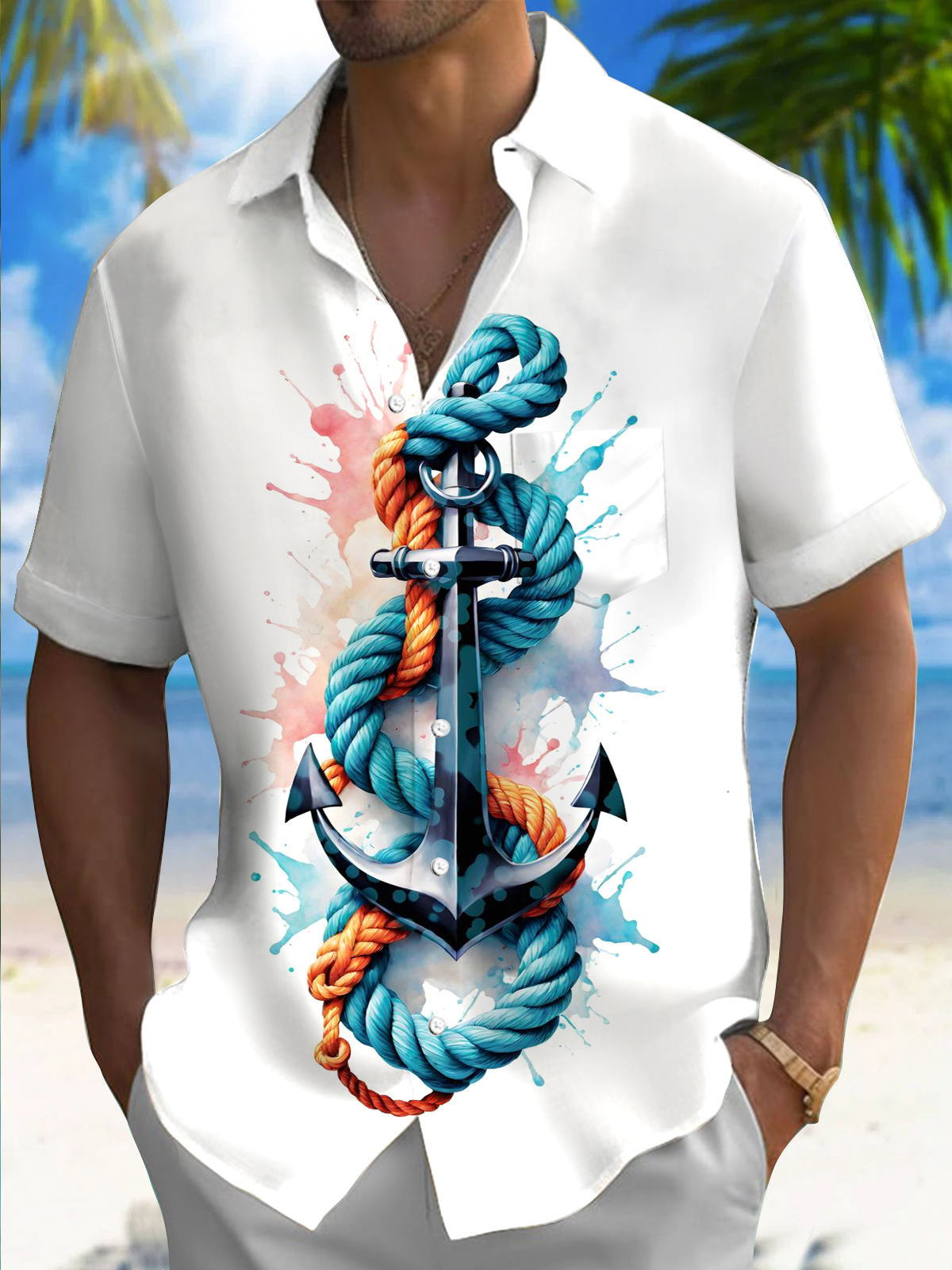 Abstract Line Contrast Print Men's Pocket Short Sleeve Shirts