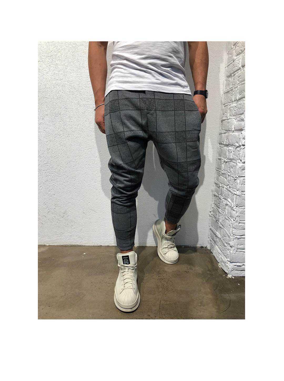 Larry Plaid Print Drawstring Waist Pants